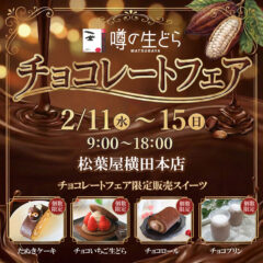 栗モンブラン、シャインマスカット生どら、焼き芋モンブラン生どら等の限定生どらの販売、松葉屋プリンや栗大福など美味しいお菓子が勢揃い。生どらも特別価格で販売しますのでお楽しみに!